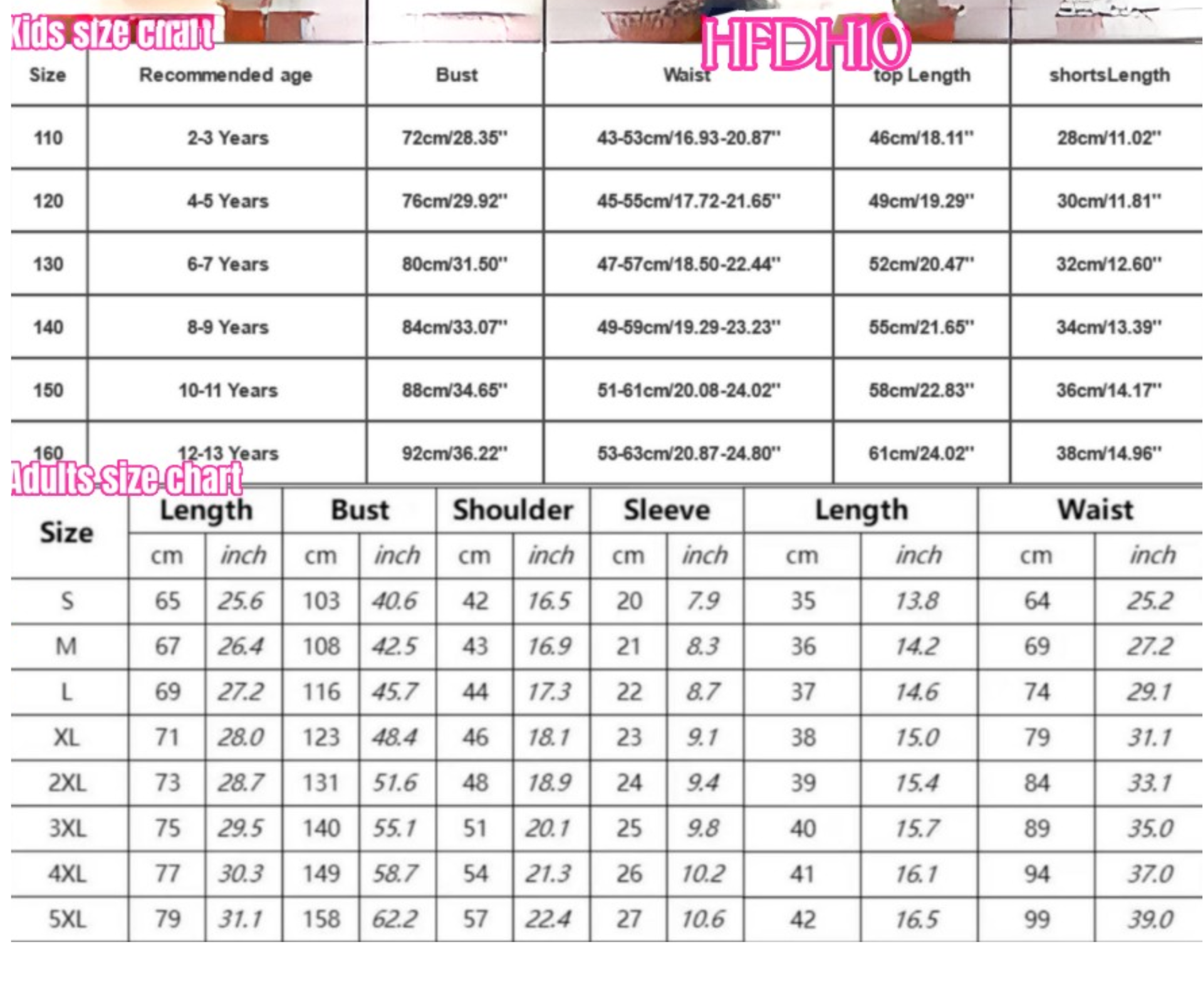 Adult Sizes: S, M, L, XL, 2XL, 3XL, 4XL, 5XL