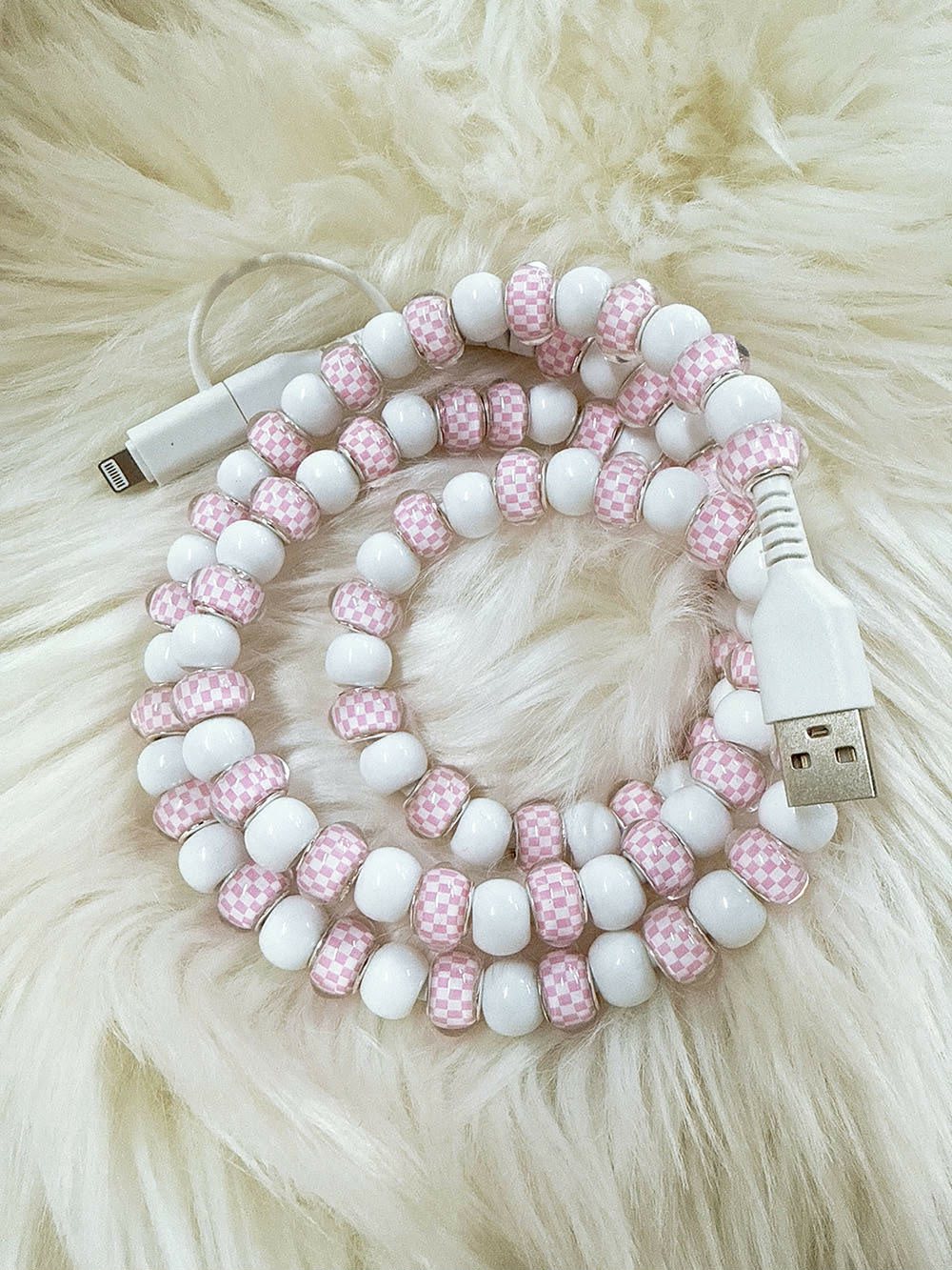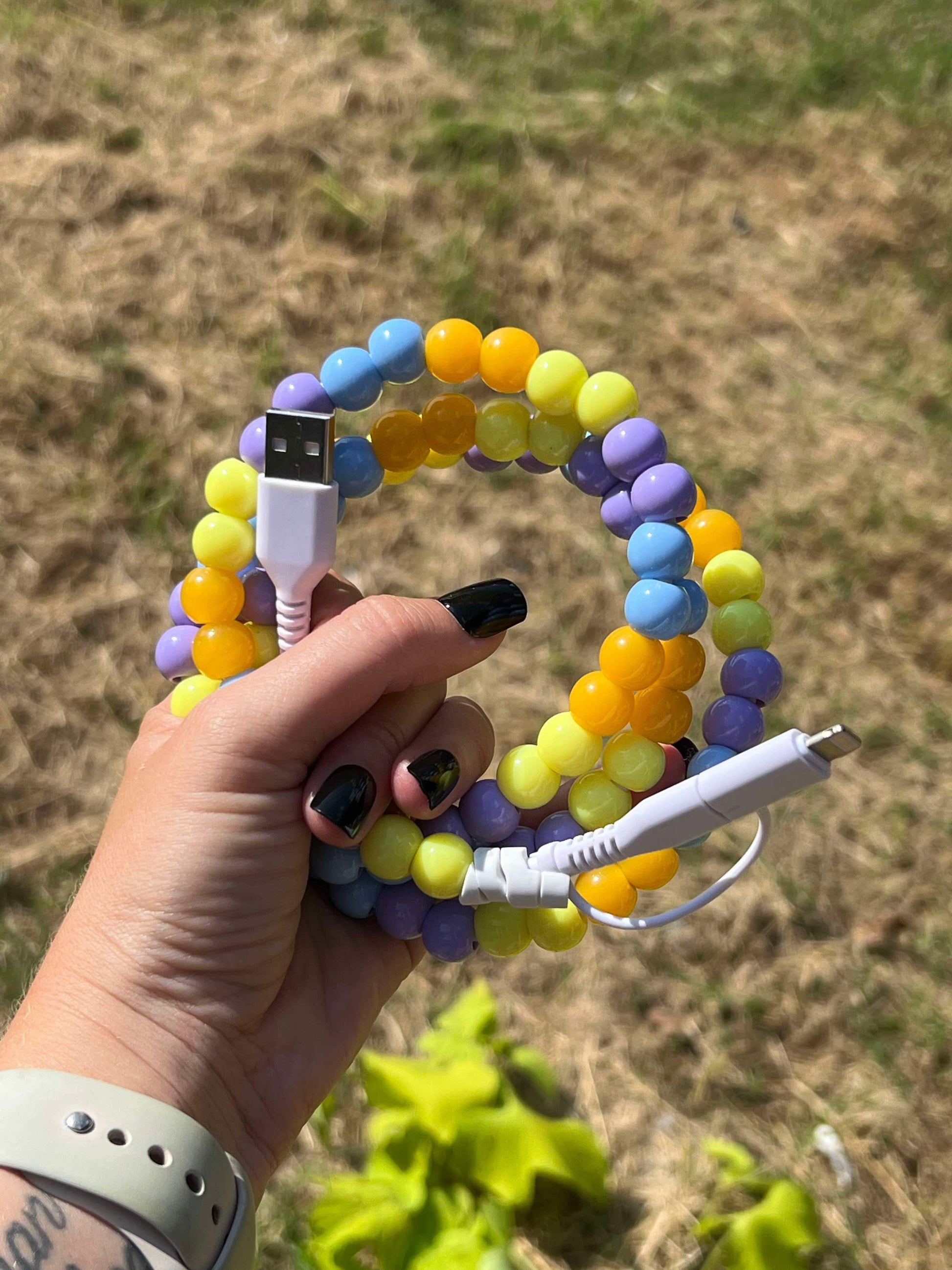 Charge in style with our Dual Beaded Phone Charger—the accessory that's as fun as it is functional! This 39-inch cable features both micro USB and USB-C compatibility, so you can power up any device. Choose from 18 vibrant colors to match your vibe and make charging feel less like a chore and more like a fashion statement. Perfect for desks, bags, or anywhere you need a little extra reach and personality.