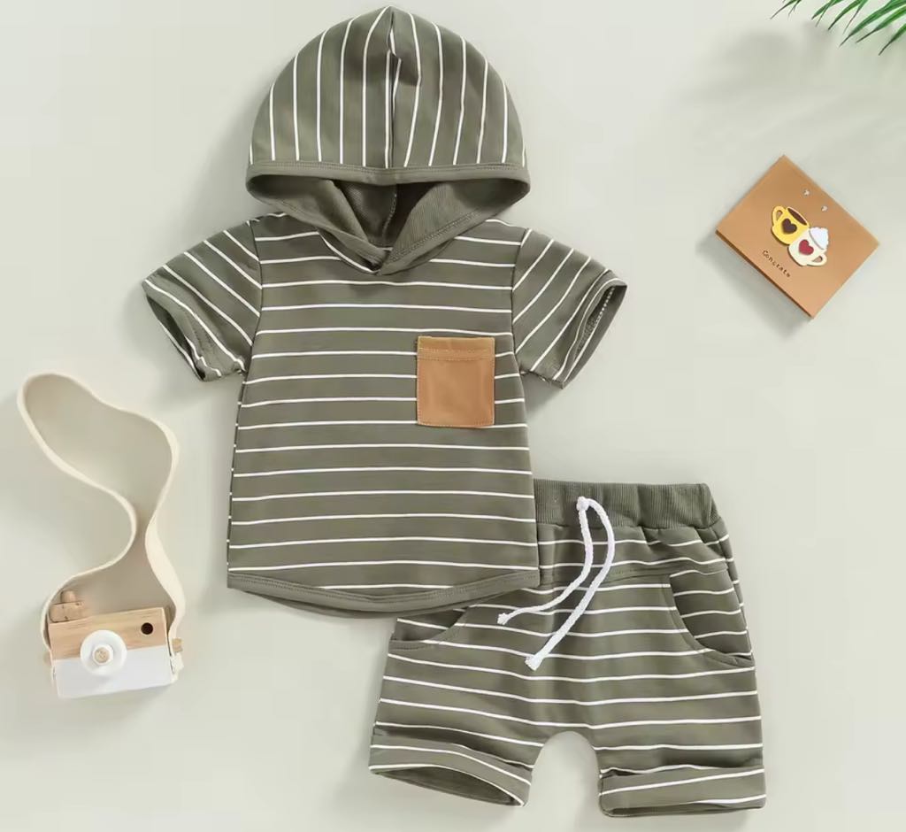 Snuggle up your little one in this adorable strip set featuring a hooded tee and pocket shorts! Perfect for playdates, nap time, or those giggly moments in between. These comfy coordinates make dressing your tiny explorer a breeze!